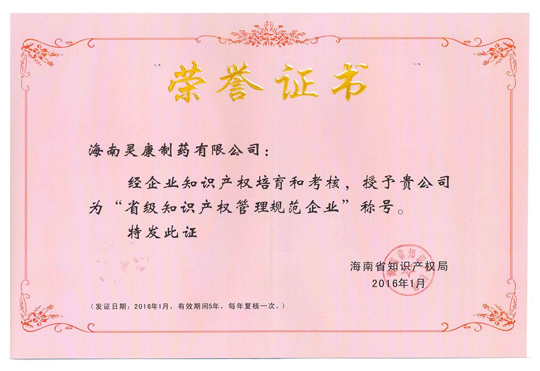 省級(jí)知識(shí)產(chǎn)權(quán)管理規(guī)范企業(yè)