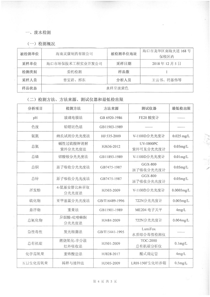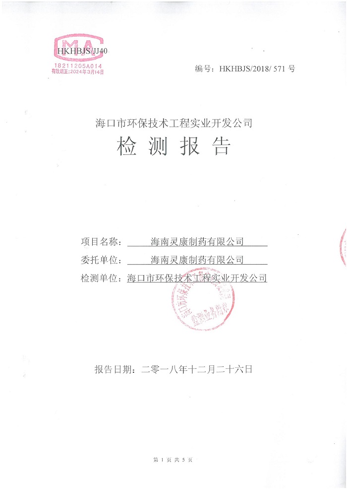 下一篇:靈康藥業(yè)集團海南靈康制藥有限公司保稅區(qū)廠區(qū)廢氣、噪聲檢測報告
